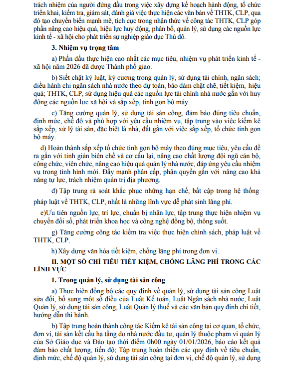 Căn cứ Quyết định số 6579/QĐ-UBND ngày 31/12/2025 của UBND Thành phố Hà Nội về việc ban hành Chương trình tiết kiệm, chống lãng phí năm 2026;