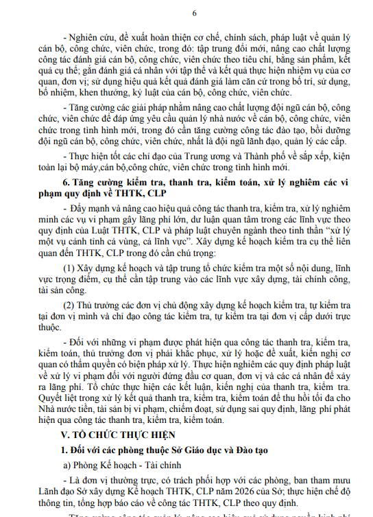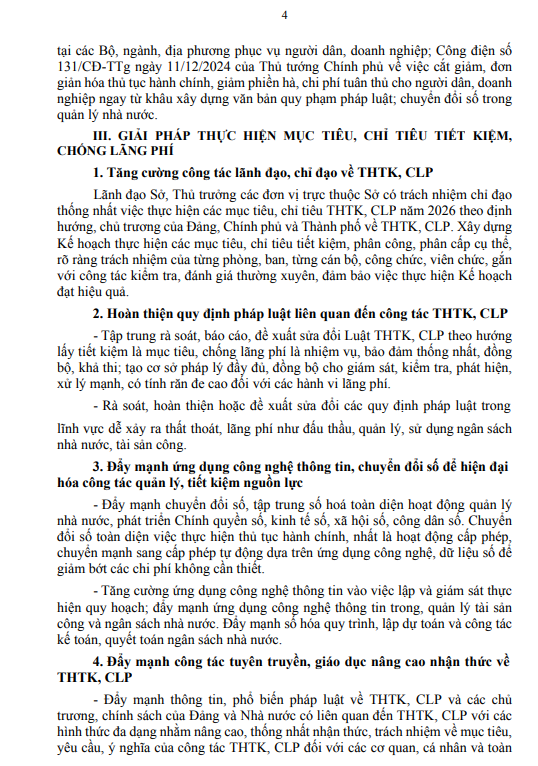 Kế hoạch thực hành tiết kiệm, chống lãng phí năm 2026